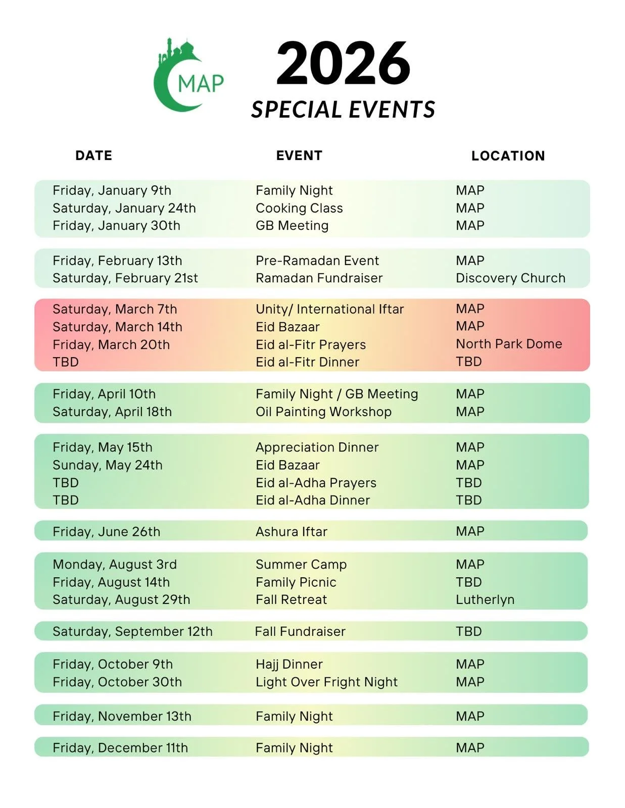 For updated events, check our WhatsApp group or Weekly Announcements